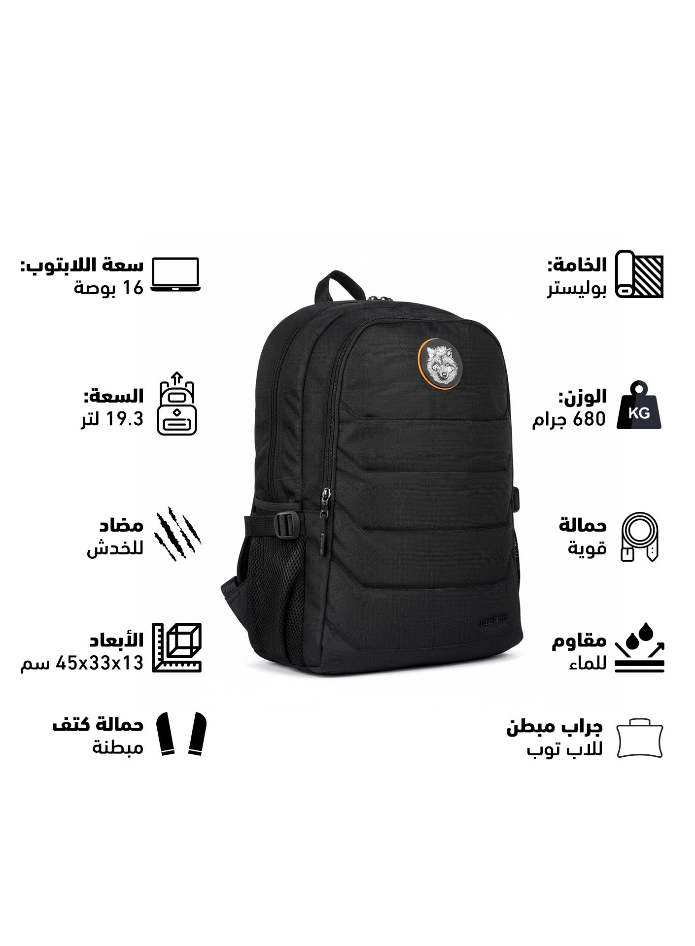 - 2 جيب رئيسي مقسم من الداخل بمساحات مختلفة.