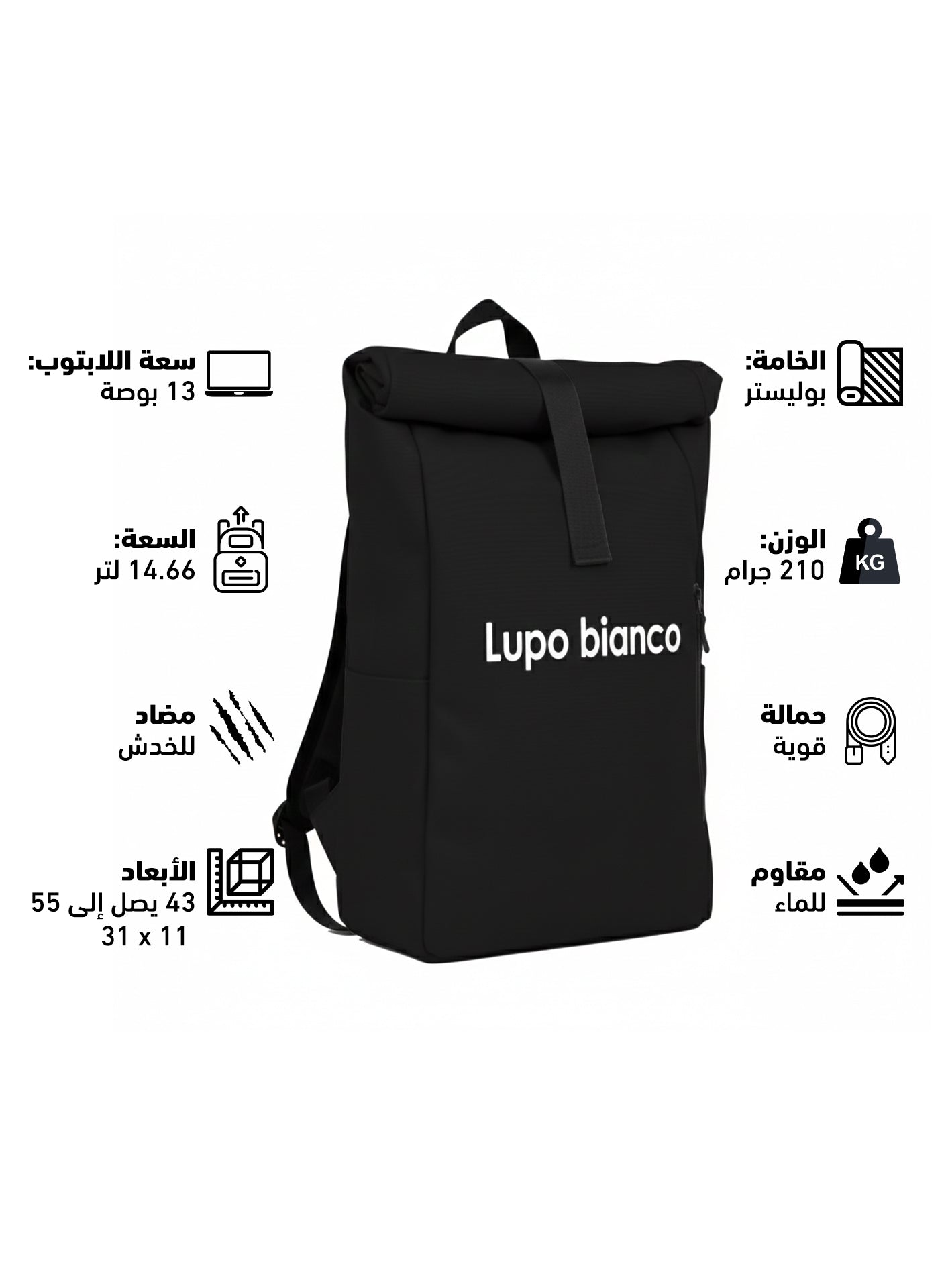 شنطة رول-توب من لوبو بيانكو هي رفيقك المثالي، تجمع بين الأناقة والعملية في تصميم واحد. بفضل الأشرطة القابلة للتعديل والمبطنة، يمكنك بسهولة حمل الأوزان الثقيلة. يضفي إغلاق رول-توب شكلًا أنيقًا على الشنطة، بينما توفر الجيوب الجانبية الوصول السريع للأشياء الصغيرة. سواء كنت تبحث عن أفضل شنط ظهر عملية، أو شنط ظهر رجالي أو شنط ظهر للبنات، هذه الشنطة تضمن لك الراحة والأناقة في كل خطوة.