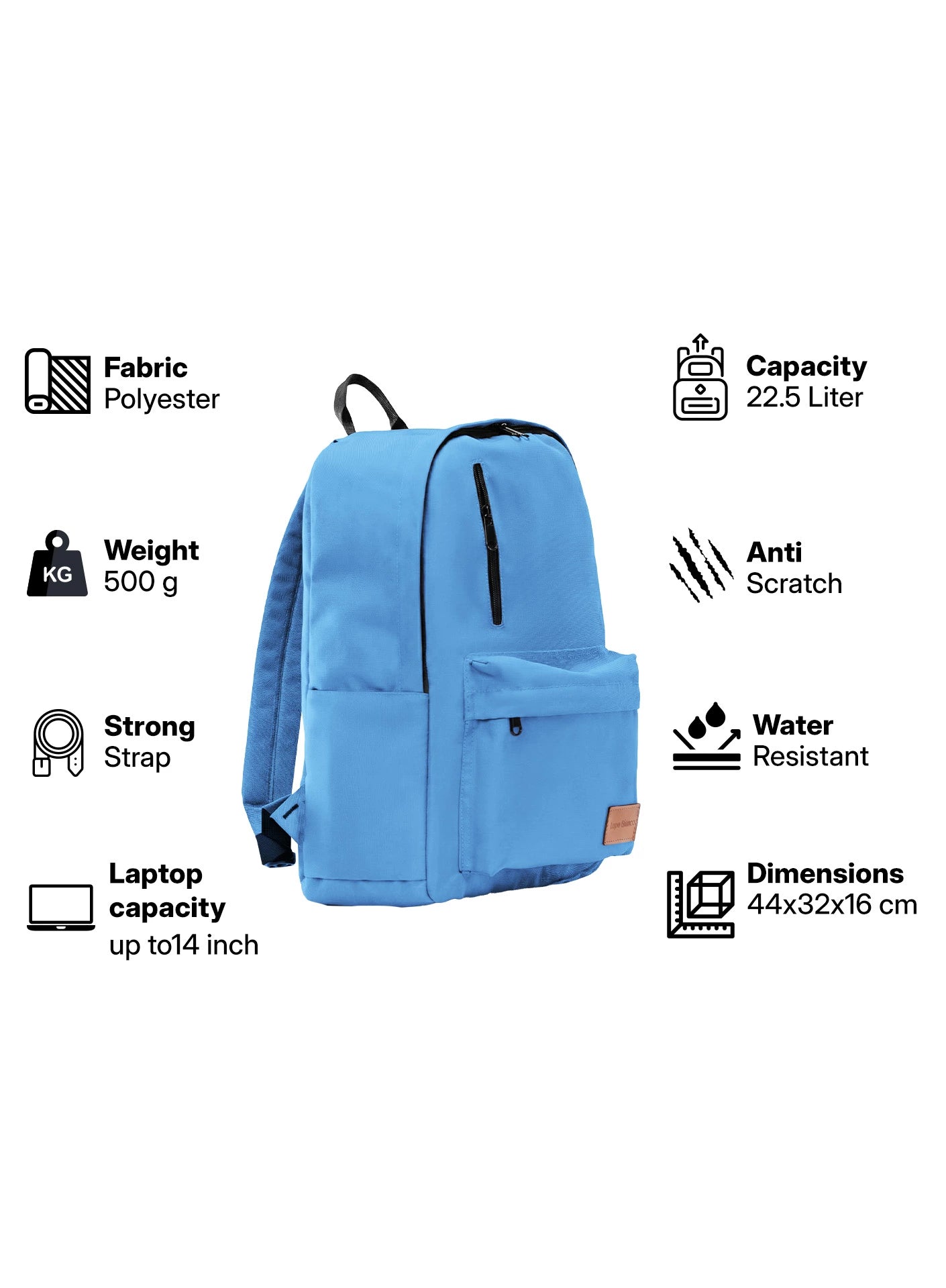 Compact 44 × 32 × 16 cm design that stays slim, lightweight, and easy to carry while fitting daily essentials comfortably.